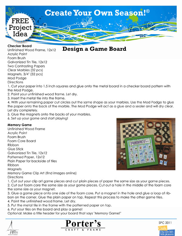 Construct a Game Board for a favorite childhood game to share with your family and friends. Project sheet includes directions for Checkers, Memory, and Tic-Tac-Toe.