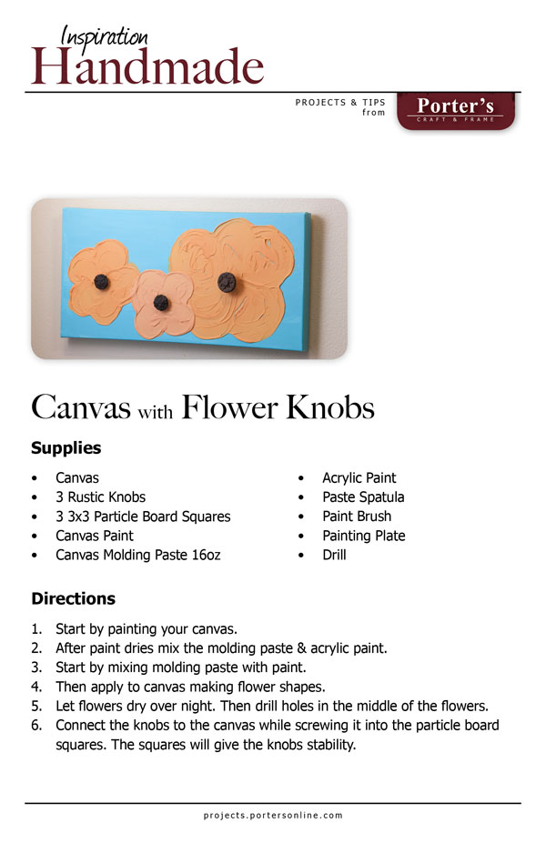 Impress your friends with your artistic skills by creating this artsy and functional piece of wall decor. Use colors and designs to accent your personal decor. Knobs can be used to hang light weight objects.