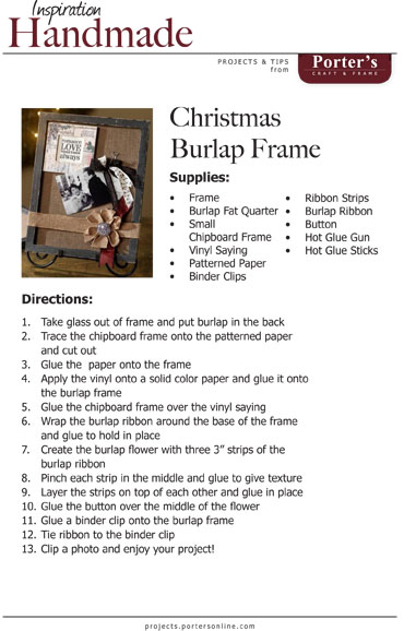 Christmas Burlap Frame The next best way to display all your Christmas Cards! Click here for the FREE project sheet. Share this: Email a link to a friend (Opens in new window) Email Print (Opens in new window) Print Share on Facebook (Opens in new window) Facebook Share on X (Opens in new window) X Share on LinkedIn (Opens in new window) LinkedIn Like Loading... Leave a comment Cancel reply Δ